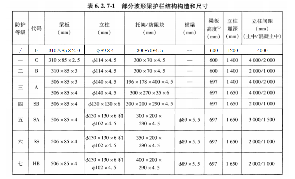 3、不同防護(hù)等級波形梁護(hù)欄的選用 條件: